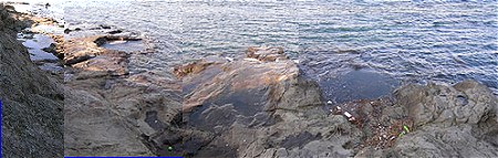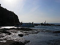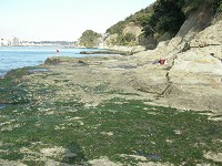 割磯は船着場から磯伝いに移動するか、中ノ宮から脇道を降りて入る。 脇道は切り立ったところもあるので注意が必要である。奥まったところはニホンポックリとエサヤで頂いた磯図に書いてあったが、その由来については分からない。面白い磯名である。そこには漁師小屋のような建物が建っている。ここは潮が余り入らない場所である。
